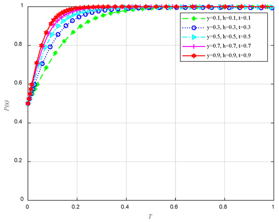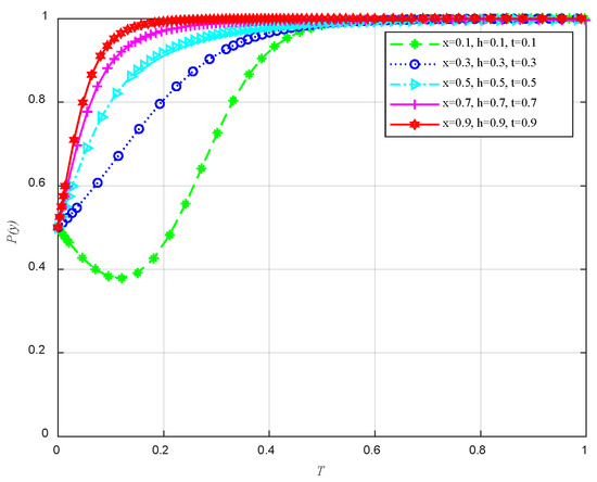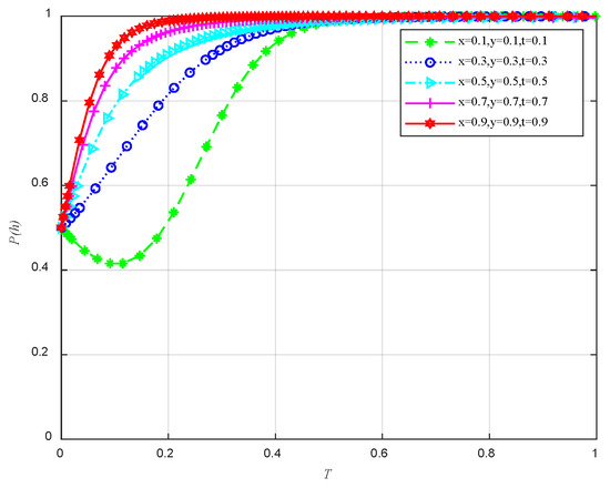 In the four-party game model, assume that the probability that the government chooses to impose strict regulation is x, the probability that the medical institution chooses to active treatment is y, the probability that the community chooses to provide security safeguards is h, and the probability that the public chooses to supervise is t, and x, y, h, t ∈ (0,1).