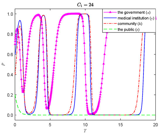 From this, it can be concluded that, to avoid the spread of psychological crises in emergencies and provide effective treatment for those with psychological crises, the government needs to regulate and pay corresponding regulatory costs. The government’s strict regulation of the medical institution can effectively prevent negative treatment from becoming an asymptotic stabilization strategy. Through the adoption of effective regulation and penalty mechanisms, the replication of the dynamic system of psychological crisis intervention moves away from the spread of psychological crises due to passive treatment by medical institution and the lack of security safeguards provided by the community, and towards positive intervention behaviors that promote social stability.