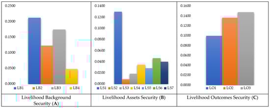 In summary, the food and livelihood security situation in these sea salt communities was generally lacking, with specific deficiencies in related essential food supply products, livelihood asset security, related non-food supply products, and livelihood outcomes security. However, relatively better scores were observed in livelihood background security and the security of essential food supply products among the farmers.