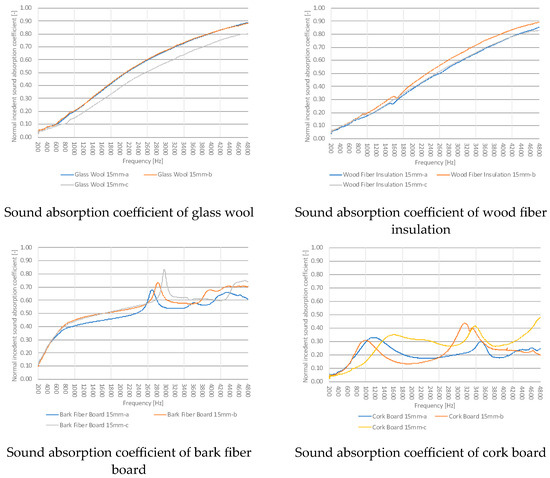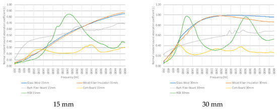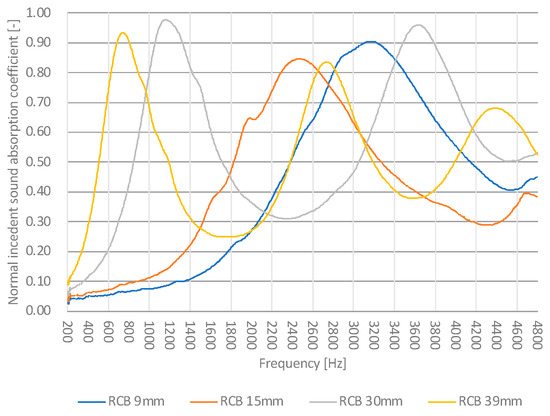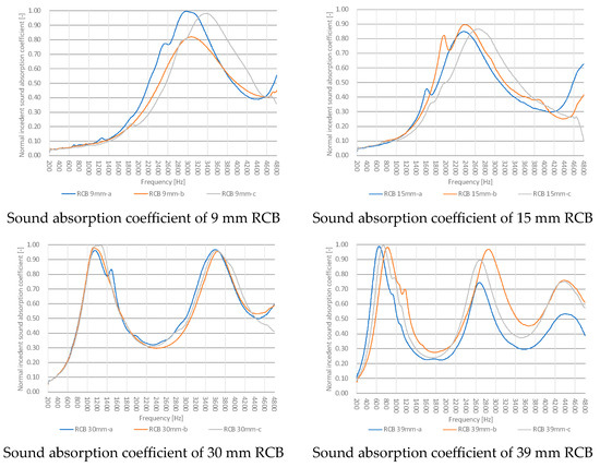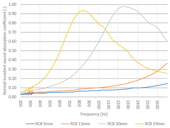 Measurement results of the RCBs’ sound absorption coefficients by thickness.