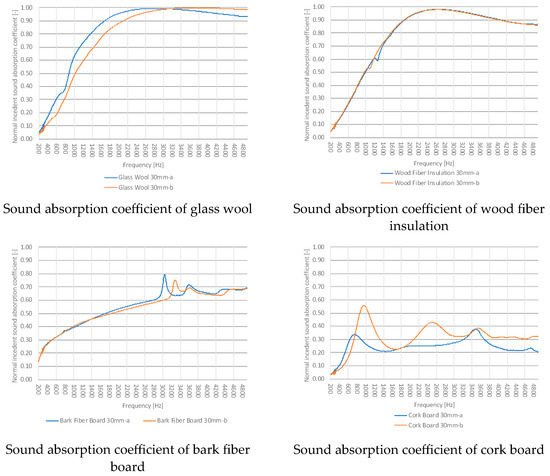 Measurement results of the sound absorption coefficients of porous materials (30 mm).