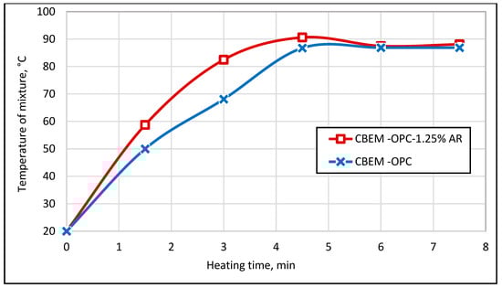 The temperature of the samples was recorded after the heating process. Changes in sample temperature are shown in Figure 3. The temperature trend during the process indicated that it consistently remained below 100 °C, leading to the introduction of a new technology known as a “half-warm bitumen emulsion mixture”. This technology refers to the use of a bitumen emulsion at temperatures lower than those of traditional HMA, while still providing satisfactory performance characteristics. Table 5 shows the GSRB limitation for the surface layer, section R9.