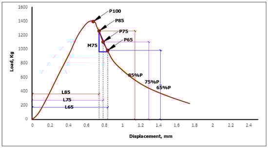 where PX and lx are the loadings with respect to the crack initiation load and displacement values at the specified stage in the post-peak side (for instance, P85 is the loading resistance value at 85% of the cacking initiation load and l85 means the displacement corresponding P85)