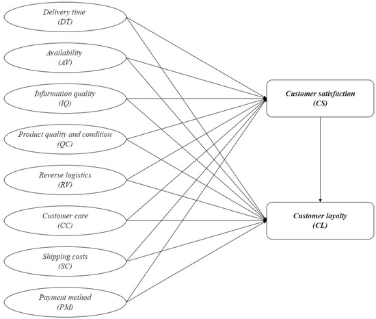 Findings from previous studies have demonstrated that there exists a strong relationship between customer satisfaction and loyalty [14,17,18,21]. The factors of logistics services related to product availability, product status, etc. are believed to have a positive influence on customer satisfaction [21]. At the same time, studies in the context of online B2C also show a positive relationship between the factors of logistics services and customer loyalty [4,5,32].