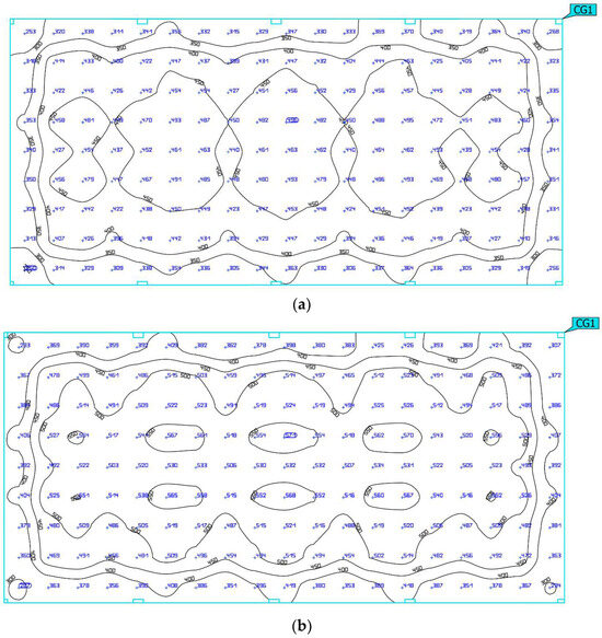 Illuminance of working plane of LED lighting replacement system and original system: (a) original lighting system; (b) replacement lighting system.
