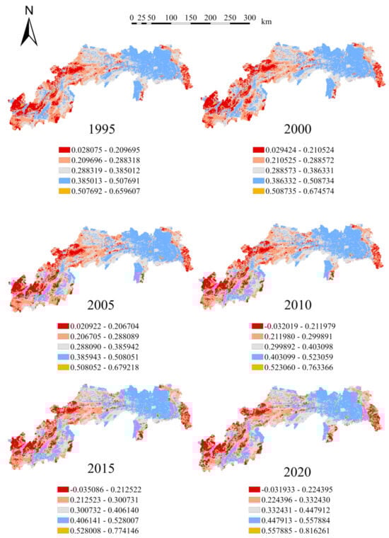 Spatial Distribution of ESV in the TGRA from 1995 to 2020.