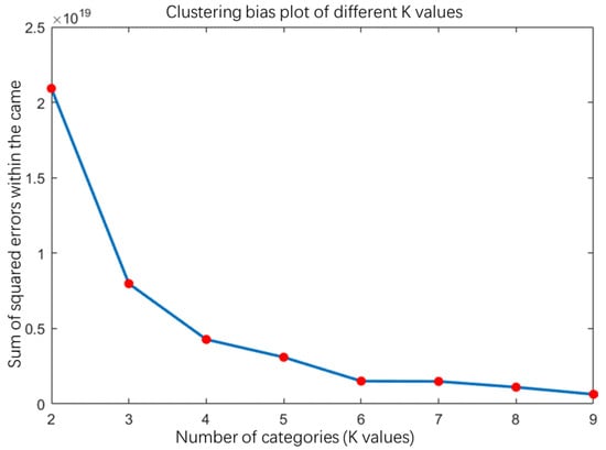 The k-means clustering algorithm based on the elbow method [] searches for the most suitable cluster number in the search range of cluster numbers with the help of the elbow method, and the main steps are summarized as follows: