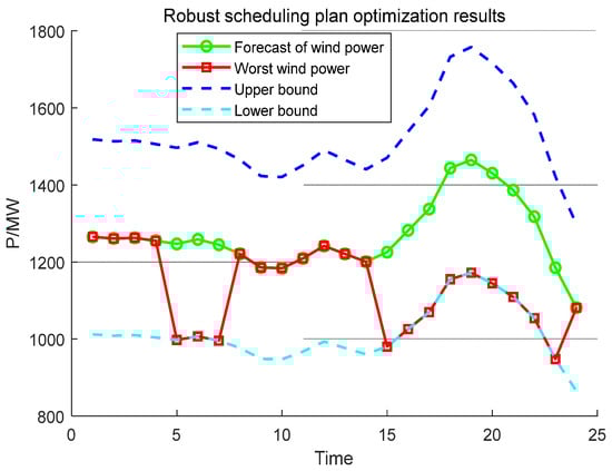 For the solution of the uncertainty interval , the optimal robust scheduling interval is obtained from the following equation.