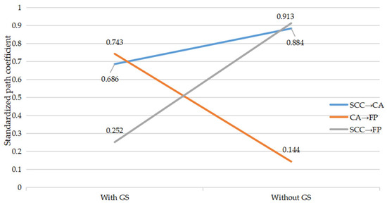 Compared to traditional regression models, we deployed Structural Equation Modeling (SEM) in this study, consisting of both a measurement model and a structural model, as a potent tool for elucidating the complex relationships among variables [26,27,28,29]. The measurement model can recognize the critical elements of SCC, CA, and FP, while the structural model can also provide a deeper understanding of findings of the mediation effect of CA and the moderation effect of GS by comparing path coefficients [30].