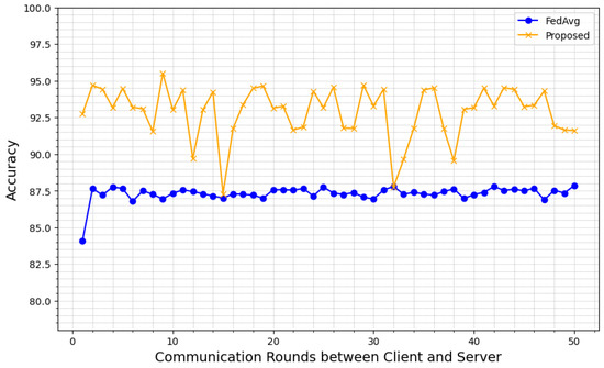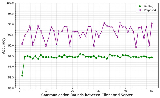 The aim of using weighted averaging is to consider data’s uneven distribution and quality across clients. By doing so, we prevent clients with minimal or low-quality data from dominating the global model update. Instead of uniformly averaging the model updates from each client, we assigned weights to each client’s update. The weights were calculated based on the client’s data distribution, quality, and training performance.