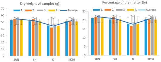 - drying in the sun (temperature around 30 °C for 4 days)—SUN;