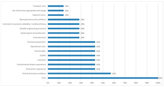 The general procurement procedure in PGE Group [47] requires that other criteria be taken into consideration in addition to price. The evaluation criteria must be related to the subject matter of the procurement procedure. They may concern: