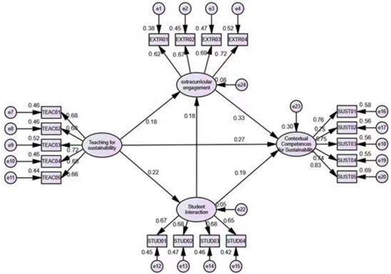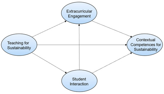 Student interaction and extracurricular engagement have chain mediating roles in the mediates influence of teaching on contextual competences for sustainability.