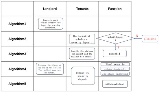 By using blockchain technology, we can establish a decentralized system to effectively solve the main problems of online rentals. Blockchain-based auctions can remove intermediary agencies [19], reduce transaction costs, and enhance trust [20]. Smart contracts can be programmed to automatically execute business rules and logic when predefined conditions are met [21,22,23]. Combining the characteristics of double-auctions and sealed auctions, we can achieve anonymous and transparent automated auction processes.