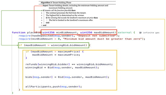 Translation of Algorithm 3 into a smart contract code.