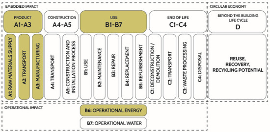 Figure 1. Stages of LCA, highlighting the analysed phases: A1–A3 and B6.