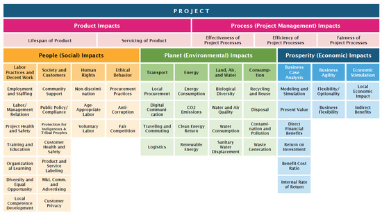 - Green Project Management. The GPM P5™ Standard for Sustainability in Project Management version 2.0; GPM Global: Novi, MI, USA, 2019. [Google Scholar]