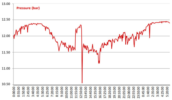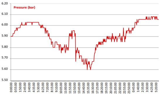 Figure 11 presents the pressure measurement from 00:00 on 26 November until 5:50 on 27 November at the location before the city entrance. Due to decreased consumption, pressure in the network is significantly increased late at night, which can also lead to a certain increase in the size of water losses in those periods.