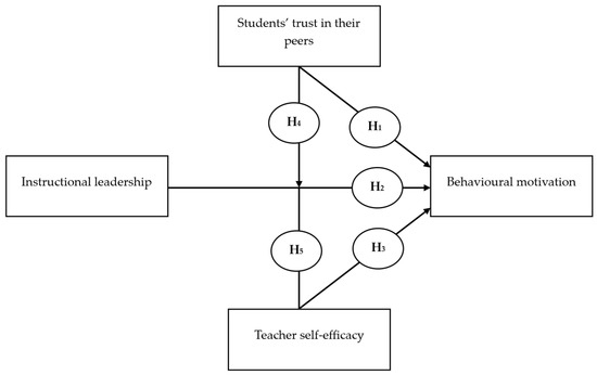 Given that the above examinations have revealed that teachers’ behavioural intentions to implement PBL in schools are, to a large extent, driven by their views on students’ trust in their peers, and their instructional leadership as well as their self-efficacy, this section of the study is designed to determine the exact manner of connections linking these perspectives to behavioural intentions. Consequently, our hypotheses were formulated as follows: