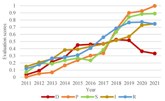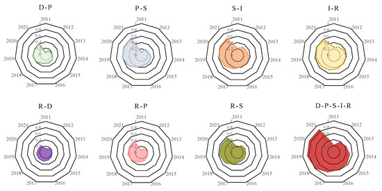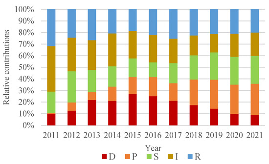 - There were differences in the developmental effectiveness of the different subsystems, and except for the Driver subsystem, the other subsystems were generally consistent with the trend in the overall effectiveness of the system. The contribution of the Pressure subsystem to the overall system increased over time. The different subsystems became increasingly interconnected and their coordination continued to improve, with greater synergy effects on the whole system.