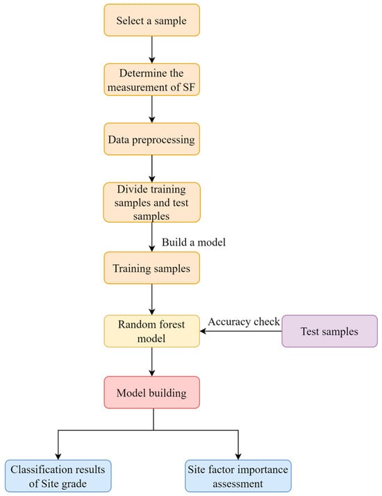 The importance of the factors affecting the growth of fir was assessed and ranked, and the influence of single factors on the growth of fir was analyzed. Figure 3 shows the flowchart of model construction.