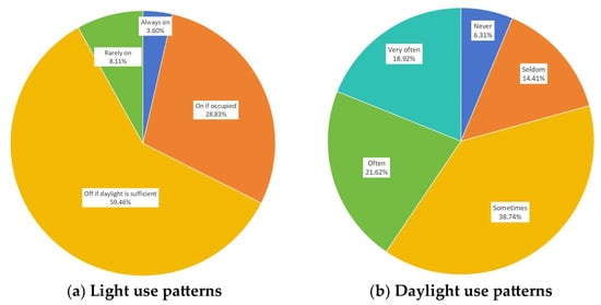 - During office hours, how were artificial lights used? (Always on even if occupants were absent, On if occupants were present, Lights were turned off if daylight was sufficient, Lights were rarely turned on, Lights were never turned on)