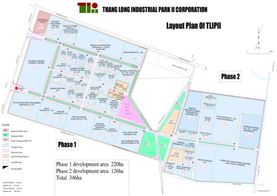 - Thang Long Industrial Park II. Layout Plan for TLIPII. Available online: https://tlip2.com/vn (accessed on 20 March 2022).