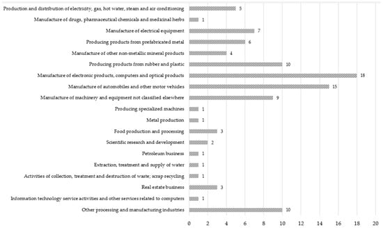 As evidenced by Figure 7, nearly 100% of firms in TLIPII apply for international certificates such as ISO 14001:2015 (Environmental Management System) [61], OHSAS 18001:2007 (Occupational Health and Safety Management System) [62], and ISO 45001:2018 (Safety-Health-Occupation Management System) [63]. These certifications enhance the competitiveness of TLIPIIs products in the global market (Figure 7).
