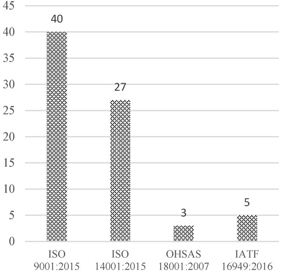 Number of enterprises with different types of international certifications. Source: Survey conducted at TLIPII (April 2022) [64,65].
