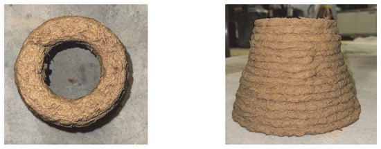 Previous publications have extensively explored soil printability and its applications in the construction industry from various perspectives [22,43,44,45,46,47]. Barnes et al. [43] evaluated different soil textures, including sand, silt, and clay, without additives regarding printability and water retention capacity. Although all the soil mixes were printed successfully, it was found that the 3D-printed samples had a lower water retention capability compared to the molded one. In order to put into practice the plant-supported earthen building, researchers at the University of Virginia [45] printed a small wall prototype with the soil–seed combination that can sprout greenery. To overcome the high cost and improve the workability of cement composites for 3D printing, Iubin and Zakrevskaya [22] used clay soil as an additive to the 3D printable cement composite. They observed the positive impact of soil in increasing the workability time from 60–80 min to 160–200 min; however, adding clay soil decreased the compressive strength between 0.5–25%. Ferretti et al. [26] developed a 3D-printable earthen material modified with a rice-husk–lime biocomposite, and evaluated its mechanical properties. The results showed that shredded rice husk had higher compressive strength compared to the mix with the non-shredded rice husk, which can be attributed to the higher surface contact of rice husk with lime in the first mix compared to the latter one; however, it had lower ductility, which may be related to the shorter length of the rice husk in the specimens with shredded rice husk.