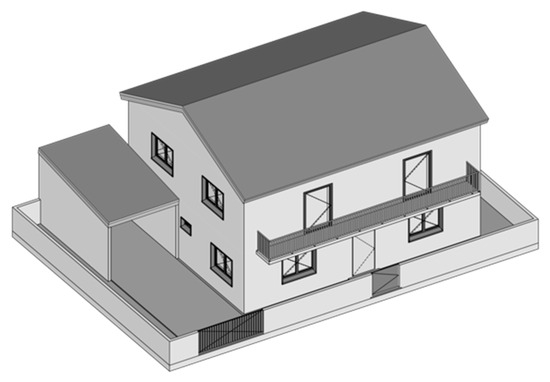 A typical detached house constructed during the period 1991–2012 was defined as the building typology to be accessed. This construction period represents about 66% of Portugal’s total energy performance certificates, of which 84% are classified from C to F. The parameters to model the reference building (e.g., area of windows and walls, heating system) for the energy performance assessment were obtained from ADENE (Portuguese Energy Agency) and the INE (National Statistical Institute) Census.