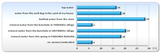 The objective of the questionnaire was to assess the residents’ perception on the quality and effect on health of the mineral waters from the three studied water sources (Tămășeu, Sîntimreu, and Pădurea Neagră). Therefore, a questionnaire addressed to the population residing in the three villages and neighboring localities (12 localities in total) was applied.