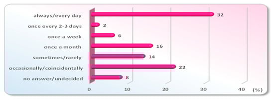 The questionnaire included multiple-choice questions, as well as open-ended questions. It contained a standard, concise introduction stating the confidentiality of answers and their exclusive purpose for scientific research. Each respondent was asked for his or her willingness to participate in the study. All persons over 15 years old of age who agreed to answer the questionnaire were included in this study.