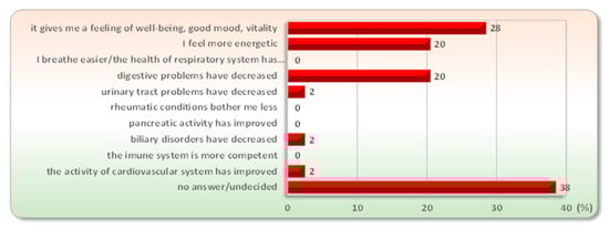 Crenotherapy has beneficial results in the therapy of respiratory pathologies. Steam or aerosol inhalation, as well as irrigation with high mineral content waters due to the several effects of minerals (antiseptic effect—sodium chloride, metabolic effects—iodine and iodides, analgesic and sedative effects—bromide and calcium) is an accessible method with long-term beneficial results for respiratory conditions such as allergies, general inflammation of the airways (chronic obstructive pulmonary disease—COPD), recurrent viral and bacterial infections, abnormalities in bronchial secretions, and impairment of lung and nasal functions [16]. Although the mode of action is still unclear, the anti-inflammatory, immunomodulatory, and mucolytic activities of mineral waters might make a substantial contribution to therapeutic effects, with the advantage of the lack of possible side effects of drugs usually used in the treatment of respiratory diseases (e.g., corticosteroids, antibiotics, bronchodilators). Inhalations with mineral water relieve the symptoms of lower and upper respiratory tract diseases, such as rhinitis, laryngitis, pharyngitis, rhinosinusitis, asthma, bronchitis, and pneumonia, and also improve patients’ quality of life [12,16,17,18].