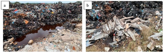 Figure 1 depicts examples of substances and materials found in two burned areas from which samples were taken for the study. The waste remained uncovered and unsecured throughout the entire period.