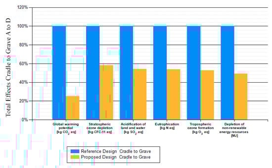 Comparison of LEED LCA measures from cradle to grave (A to D).