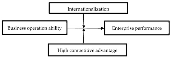 An enterprise can operate sustainably only when it maintains a strong operating performance. In addition to meticulous management, businesses also require access to a sufficiently large market. Taiwan’s neighboring countries, including Japan, South Korea, and the Philippines, possess domestic markets that surpass Taiwan’s in terms of both land area and population. Consequently, domestic small and medium-sized enterprises must expand beyond their relatively small domestic markets and enter larger international markets. They can then leverage domestic manufacturers to enhance their operations. Exceptional capabilities are essential for achieving superior corporate performance. Therefore, internationalization stands as a crucial factor for Taiwanese companies seeking to enhance their business performance [22,23]. A competitive advantage involves a company having better capabilities and being in a better position than its competitors in the same industry. From the perspective of business operations [24], the purpose of having a competitive advantage is, of course, to make continuous profits. Continuous profits can promote the sustainable operation of the company and enhance employees’ salaries and happiness [25]. A competitive strategy is a type of business strategy, and a strategy is the way to achieve goals. Therefore, a competitive strategy can be understood as a strategy to obtain a competitive advantage in the short term and bringing the company sustainable profits in the long term. There are three basic types of corporate competitive advantage, including cost leadership, differentiation, and focus [26,27]. Cost leadership is the key to maintaining selling prices and reducing operating costs. Differentiation is the ability to maintain operating costs and differentiate products and services from competitors. Focus is the ability to target niche markets and lock in large competitors who are not interested in niche markets [28,29,30]. A “competitive advantage” refers to the “resources or capabilities” an enterprise possesses, but not all resources and capabilities can be called “advantages” [31]. According to the principle of strategic advantage [32], the resources and capabilities that can be called corporate advantages must meet the following conditions: (1) scarce, very rare and rare in the market; (2) immobile, it cannot be used by other companies unless the company agrees; (3) scopable, in addition to the current field of application, it can be expanded and applied to other fields, businesses, and industries [33,34].