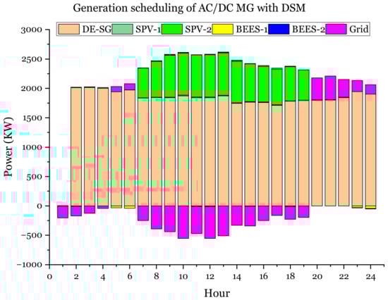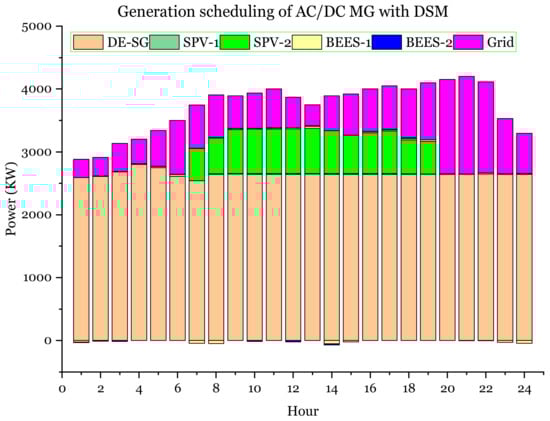 Development and Analysis of Optimization Algorithm for Demand-Side Management Considering Optimal Generation Scheduling and Power Flow in Grid-Connected AC/DC Microgrid