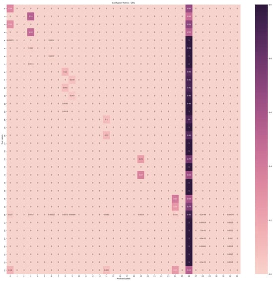 In the pursuit of enhancing fall detection accuracy within the proposed methodology, the GRU algorithm emerged as a compelling candidate. GRU, a variant of recurrent neural networks, possesses a unique architecture that enables the modeling of sequential data by selectively retaining and updating information through its gating mechanisms. In the context of our study, the GRU algorithm was applied to the combined walking and falling dataset without resorting to fine-tuning techniques. Notably, this approach yielded an accuracy of 40% in fall detection. The GRU’s ability to capture temporal dependencies and recurrent patterns in movement data likely contributed to its performance. While the achieved accuracy may appear modest compared to some other algorithms, the significance lies in its integration within the broader methodology. This finding underscores the potential of employing advanced machine learning techniques, such as GRU, to further refine fall detection systems for the elderly population, with opportunities for iterative improvements as the methodology evolves. The working mechanism is shown in Equation (3).