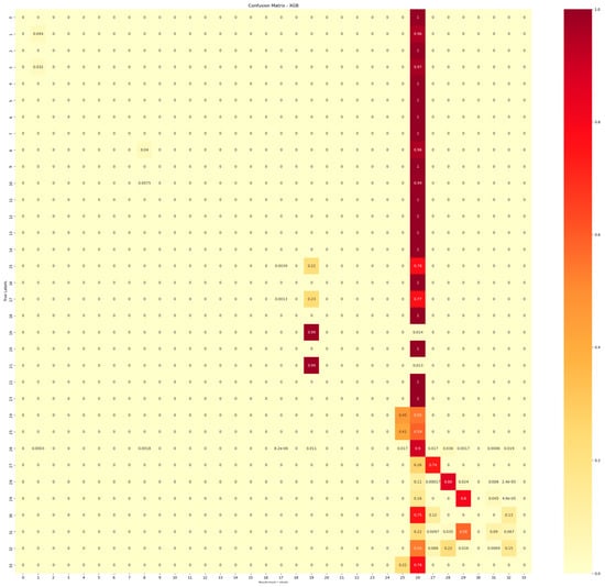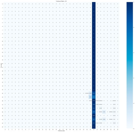 Within the context of elderly fall detection, the Random Forest algorithm assumes a pivotal role as a cornerstone of the methodology. Deployed on a dataset exclusively comprising fall-related data, the algorithm showcased its capacity to navigate the complexities of the elderly population’s movement patterns. Notably, achieving an accuracy of 42.6% without recourse to fine-tuning, the Random Forest algorithm unveiled a nuanced understanding of fall events. While the accuracy may appear modest in isolation, it signifies a substantial stride in comprehending the intricate interplay between sensor data and fall dynamics. The algorithm’s ensemble of decision trees aptly captures the diverse variables governing fall occurrences, demonstrating its ability to recognize subtle cues within the data. Although fine-tuning was not pursued, the achieved accuracy substantiates the potential of the Random Forest algorithm in enhancing elderly fall detection systems. This outcome serves as a springboard for further exploration, inviting inquiries into feature engineering, parameter optimization, and ensemble refinements that could potentially amplify the algorithm’s accuracy and its role in fostering safety among the elderly population. The fitness function of RF is shown in Equation (1).