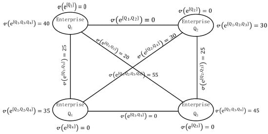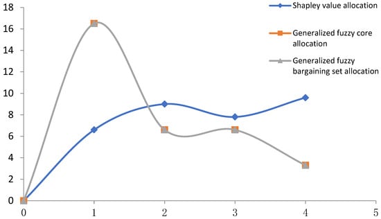 - Establish a mechanism for supply chain enterprises to cooperate with multiple alliances. The idea of a classical game in the application of a supply chain enterprise alliance is embodied as follows: (i) Participants are fully involved in a specific alliance, i.e., participants either participate in a certain alliance or do not participate in a certain alliance, and there is no situation in which participants participate in a certain alliance with a certain degree of participation. (ii) Participants are fully aware of the benefits of various cooperation strategies and the distribution of their participation in a particular coalition before they cooperate. However, in reality, more often than not, in the face of many uncertainties, enterprises participate in multiple supply chain alliances with different participation levels or participation rates, and they are not sure or even aware of the benefits of different cooperation strategies and their respective distributions in a particular alliance before cooperation. Therefore, it is necessary to use the distributional solution of the fuzzy game of supply chain enterprise alliances to describe the uncertain phenomenon via the degree of affiliation or participation, to portray the quantitative relationship in the real problem more reasonably and to provide a powerful analytical tool to deal with the uncertain phenomenon.