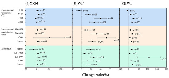 3.2. Response of Crop Yield, WP, and IWP to Subsurface Irrigation as Influenced by Environmental Factors