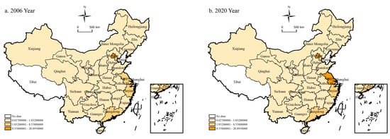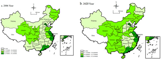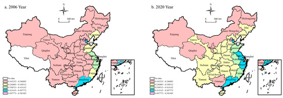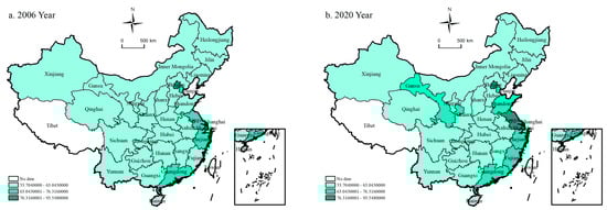 Spatial map of China’s High-quality development: (a) 2006, (b) 2020.