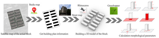In this work, our objectives were to assess the building carbon emissions intensity (CEI) during the operational phase of residential blocks using the Rhino and Grasshopper methods and to analyze the impact law of the block morphological parameters on the buildings’ CEI. Specifically, this work’s focus was on addressing the following three key questions: