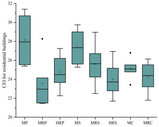 CEIs of residential buildings in different cities.