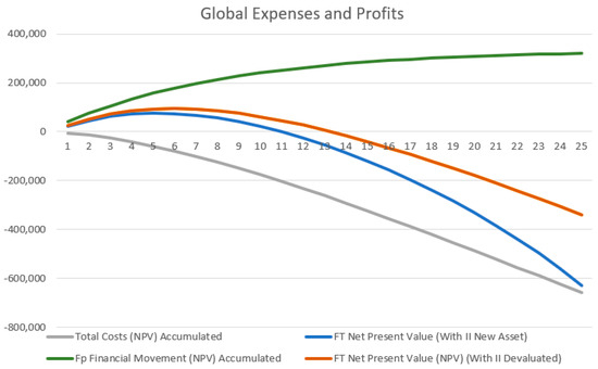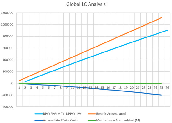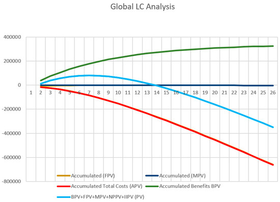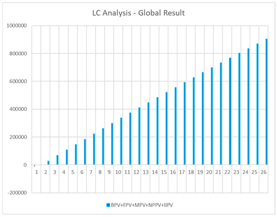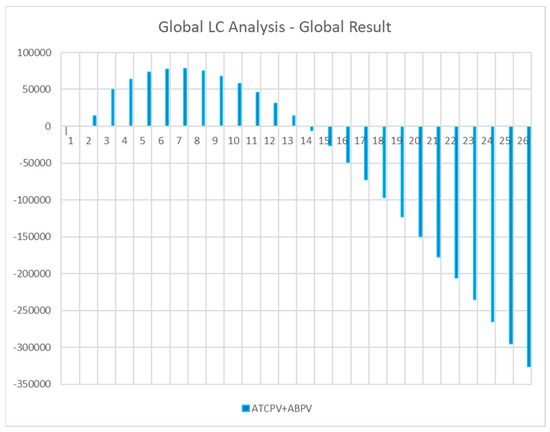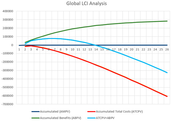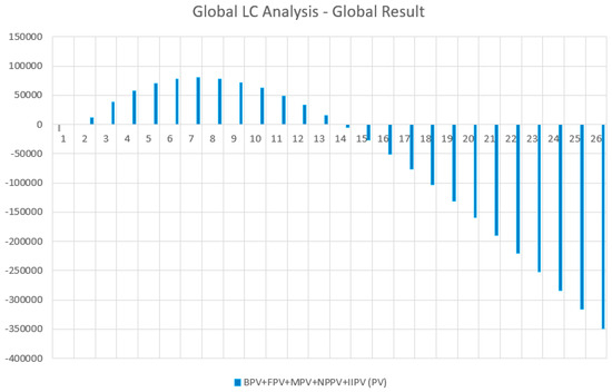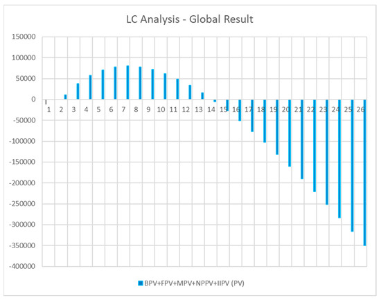 Figure 16 shows the Global Result of Life Cycle Investment (LCI), considering expenses and profits with a reduction in Present Value.