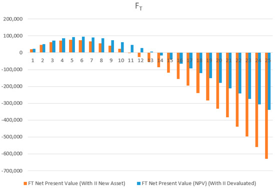 NPVTD = Total Net Present Value considering Physical Asset Devaluation, NPVFpD = Net Present Value of the Financial production movement, NPVFe = Net Present Value of the Financial Expenses movement.