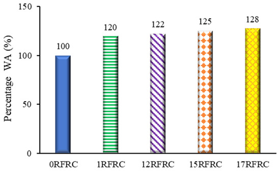 Figure 2 provides a comparison of the results obtained from the water absorption test. The water absorption of RFRC samples (1RFRC, 12RFRC, 15RFRC, and 17RFRC) is shown to be higher compared to 0RFRC.