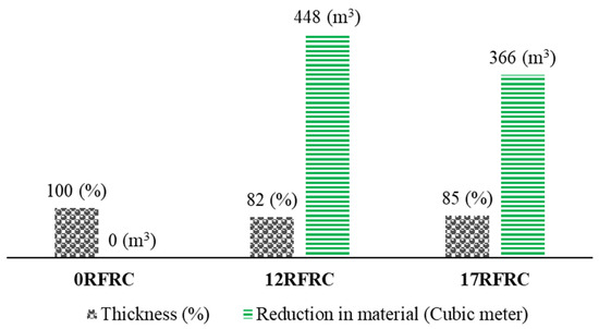 Table 4 displays the linear shrinkage (LS) and corresponding coefficients of variation (CoV). The LS results indicated that 1RFRC exhibited a slightly lower linear shrinkage compared to 0RFRC, with a reduction of 0.0025%. However, for 12RFRC, 15RFRC, and 17RFRC, a slight increase in linear shrinkage was observed, ranging from 0.008% to 0.01%. This phenomenon can be attributed to the abundance of RSFs (1.25% to 1.75%), which may have compromised the uniformity of concrete, subsequently affecting its drying characteristics and contributing to an increased degree of shrinkage in the concrete. Similar findings regarding increased linear shrinkage due to the inclusion of thick fibers and an excessive amount of fibers, surpassing optimized dosages, have also been reported in previous studies [44,75].