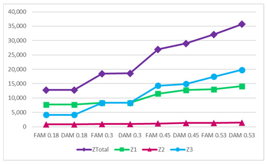 Another important objective function is the distance that waste shipments must travel to reach the sorting or processing facilities. This objective function is of paramount importance because waste shipments should be dispatched in a way that covers the shortest distance to minimize potential environmental pollution. Moreover, considering that organic waste materials typically have a high moisture content, it is better to avoid long-distance transport [28], especially during very hot or very cold seasons. Icing can lead to difficulties in waste sorting, and exposure to heat and dry conditions can result in moisture loss and reduced WtE efficiency. Therefore, efforts are made to locate facilities in a manner that minimizes the total distance traveled by waste shipments.